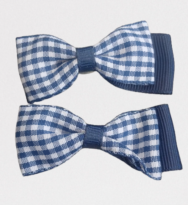 Par de Ganchos con Moño Vichy – Azul Oscuro (2 piezas) | Niña