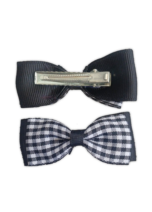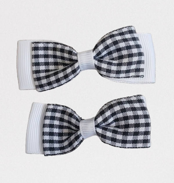 Par de Ganchos con Moño Vichy – Blanco y negro 2 (2 piezas) | Niña