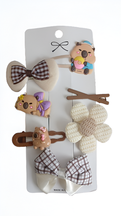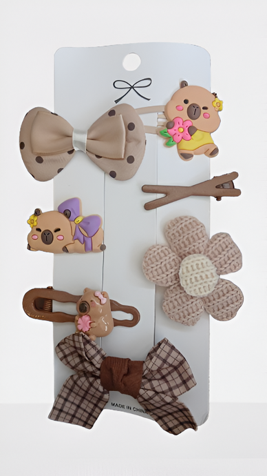 Set de Ganchos Capibara Marron (7 piezas) | Niña