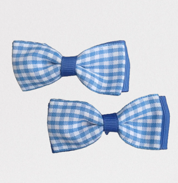 Par de Ganchos con Moño Vichy – Azul Claro (2 piezas) | Niña