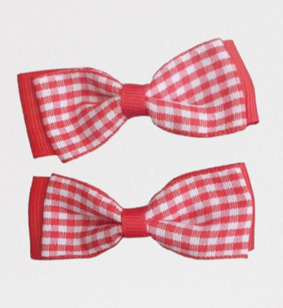 Par de Ganchos con Moño Vichy – Rojo (2 piezas) | Niña
