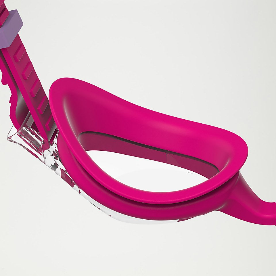 Su marco suave y flexible se adapta delicadamente al rostro del niño, evitando molestias o marcas en la piel, mientras que los clips laterales de fácil ajuste permiten colocarlos de forma rápida y segura por los padres o instructores.